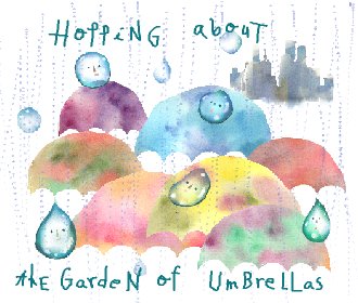 ぼくは 雨から うまれた 水滴 通勤の ひとたちで ぎゅうぎゅうづめの まちかど 傘から 傘へと ひょい ひょい ひょい まっくろな ジャンプ傘 ふるぼけた おりたたみ傘 みんな パラソルの 花園に はやがわり サラリーマンが おとなりのサラリーマンに はなしかけては 「おや きょうはまた にぎやかな色の 傘ですな」 「いやはや おたくこそ 水玉とは また 粋な」 |