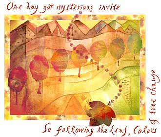 ある日 町はずれの郵便受けにとどいたのは 木の葉にかかれた 招待状 鼻をくすぐる 枯葉のにおい かさかさ 耳もとで鳴るのは 秋の音 なんだか とってもなつかしい この音 このにおい この声は ちいさなころに 知ってたような ちいさなころに 仲良しだった そのとたん 招待状は くるりとひるがえり 「秋色の 旅へ ようこそ」 「まって まってよ どこへ行くのさ」 あわてて 追いかける 一本道 |