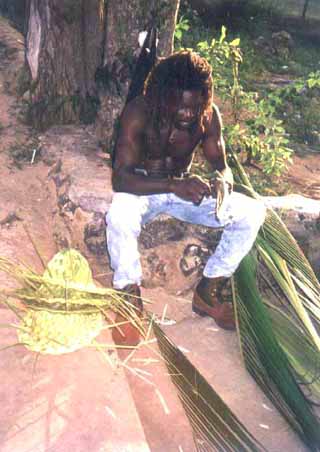 固い固い うちわ椰子の葉を編んで